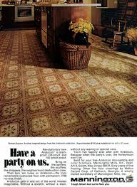 Solarian vinyl asbestos floor tiles, and the following: Our photo (at left) of 1970's era Armstrong Solarian Devonport Blue-White vinyl-asbestos floor tile was provided courtesy of reader N.H. Armstrong Solarian & Excelon Vinyl Asbestos Floor Tiles included the "Custom" patterns in 1978: For colors for which a link is not provided below, see the earlier occurrence of that tile color in a previous year. Our photo (below-left) shows a late 1970's vintage Craftlon Romford Brick 9"x9" 0.80 gauge white vinyl asbestos floor, photos provided courtesy of reader Matt Abel, Design Services Department, Strongwood Log Home Company. Our second flooring picture (below-right), provided courtesy of reader Diana Elliott, illustrates that resilient sheet flooring was produced in a pattern similar to Romford Brick floor tiles from 1973 and 1974, and closely resembling two other 12" x 12" tile patterns from the same era: Custom Glenmore Brick 12" x 12" and Custom Old Forge 12" x 12"