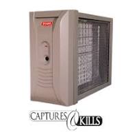 F300E Duct Mounted Electronic Air Cleaner. Features, Specifications, Installation, Dimensions, Maintenance. (1.8M pdf, 40 pages) F300E F50F Owners Guide(703k pdf, 20 pages) Dust sizes and settling rates. (128k pdf, 1 page) Views of the cabinet, cells, pre-filters, and door. (250k pdf, 3 photos) in your air conditioner system. The UVC purification lights must be mounted next to the evaporator (cooling) coil, AND on the downstream (cold air side) of the coil. must shine both on the air conditioner cooling coil and on the water drain pan underneath the coil (if installed), because this is the main area where mold spores grow. The Air Probe Sanitizer in the photo above isindeed mounted in a duct, but it is illuminatingthe cold side of the A-coil and water drain panunderneath it.(Click the photo for a different view). If the UV-C lamps are mounted elsewhere, then slime, algae, bacteria, and mold WILL grow on the cooling coil, drain