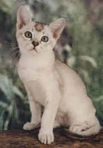 In 1981, an accidental mating between a male Chinchilla (Jemari Sanquist), and a female lilac European Burmese (Bambino Lilac Faberge), resulted in the birth of 4 black Shaded Silver shorthaired kittens of good Burmese type. The breeder, Miranda von Kirchberg, already well known for her Astahazy Russian Blues, had the foresight and knowledge to understand that these kittens could be the foundation for a new and exciting breed group which would fill a gap in the Cat Fancy - Silver and Tabby equivalents of the Burmese. With Astahazy Galatea, one of the first litter, she embarked on an experimental breeding programme with the advice and support of many leading Burmese breeders, geneticists and GCCF advisors. At the time of her death in 1997 her inspiration was about to become reality- the Burmilla was on the verge of competing for the first time at Championship status in GCCF, almost 16 years after the birth of the first kittens. The Burmilla may either be silver (above) or non-silver (right);