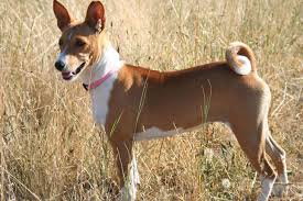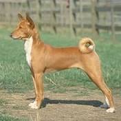 Family:sighthound, scenthound, primitive, Southern (pariah) Area of origin:Central Africa (Zaire and the Congo) Original function:hunting small game Average size of male:Ht: 17, Wt: 24 Average size of female:Ht: 16, Wt: 22 Other names:Congo dog, Congo terrier Basenji Dogs Available on Petfinder Right Now Some consider the Basenji to have terrier-like mannerisms because he is feisty for a hound. More often he is considered catlike in mannerisms: clever, inquisitive, stubborn, independent and reserved. His hunting roots are very evident, as he loves to chase and trail. He needs regular mental and physical stimulation, lest he become frustrated and destructive. Basenjis may be barkless, but they are not mute. They do make a sort of yodel, howl and shriek and occasionally bark, but just one or two fox barks at a time. The Basenji is an active dog that needs daily mental and physical exercise. His needs can be met by a long walk followed by a vigorous game, or by running freely in a safe, enclosed area.