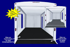 The deck that rests between the axles has a standard 75-inch door with a floor-to-ceiling height of 81 inches. The next tallest, by an additional six inches, gives a door that is 81 inches tall and has a floor-to-ceiling height of 87 inches. These “sport” models are year-around multi-purpose trailers that let owners haul snowmobiles, ATVs, side-by-sides (UTVs), motorcycles or a show car, if need be. By using a between-the-axle sport deck, ceiling height works to the owner’s advantage by running tall with somewhat reduced drag. Jones recommends a frame that protects itself from salt. He stated the underside frame – the deck frame – should have a spray-on protective undercoating. A reputable company will assure door hinges are protected from corrosive road salt. Frame support at center-to-center should be sixteen-inches apart. Frame supports, and this an opinion for small debate, should be square tubing from the deck supports to the walls to the ceiling, as this prevents the trailer from flexing when carrying heavy loads.