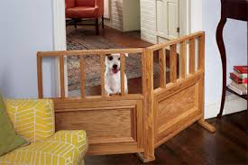 Build a Dog Gate Whether it keeps his muzzle away from the dinner table or stops him from getting underfoot during parties, a dog gate is a handy tool for setting proper boundaries for your pooch. And it certainly doesn't have to look like a dreary chain-link fence. See how to make this handsome piece that can stand proudly in any room in the house. Build a Dog Crate Though your grown-up pup might still enjoy the security of his training crate, there's just no good place to put that ugly metal cage. Why not build him a decorative furniture piece from wood that doubles as a safe haven when your pooch wants to curl up for a snooze? Check out how to make this design, which incorporates a reproduction heating grate and decorative cabinetry grille. You can easily use it as a side table in a living space while your furry friend slumbers inside. Build a Dog Feeding Station If your perfect kitchen design is being compromised by dinged-up dog bowls and the dried-up drool that surrounds them, this well-built canine furniture will not only jazz up the fanciest of cook's spots—and organize the bowls, cans, and bags that are part and parcel to nourishing your pup—but the elevated platform will also give your furriest family member some much-needed neck and back relief.