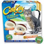It made a lot of sense to me when I calculated that Furball was going through at least 200 lbs of litter a year. I also knew he was toxoplasmosis-free, so I wasn’t concerned about flushing his waste. Ewa wrote that she was using the Litter Kwitter cat toilet training system and thought this was the best system as it seemed more durable and allowed you to go back a step in the training process. Without it being said, she was probably comparing Litter Kwitter to CitiKitty. After I read her email, I looked at reviews on Amazon for Litter Kwitter and CitiKitty. There seemed to be a number of reviews that concurred with Ewa. I thought about buying the Litter Kwitter, but balked at the hefty price tag. Also, when I read feedback on toilet training your cat, it seemed like the bathroom would be one giant mess of litter, feces and urine until the cat was trained, which could take months. With the demands of a new baby in the house, I hesitated. After I posted Ewa’s tips on toilet training your cat, I got an email from CitiKitty.