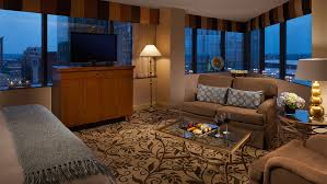 Rooms are located on the 12th and 14th floors. *Club Lounge can be accessed Monday – Thursday 6:00 a.m. to 10:00 a.m. and 5:00 p.m. to 10:00 p.m., Friday open from 6:00 a.m. to 10:00 a.m., Saturday closed and Sunday open from 5:00 p.m. to 10:00 p.m. These 640-square-foot corner junior suites feature a king bed, two glass walls overlooking the city skyline and an intimate sitting area with a loveseat and lounge chair. These spacious 740-square-foot suites feature elegant living space and are equipped with a wet bar, conference table with six place settings and connecting guest room with a king bed. Scott and Sheppard Suites These elegantly–appointed 1,200–square–foot suites include an adjoining sitting room with a wet bar and refrigerator, a large garden tub, a separate shower and dramatic views of uptown Charlotte. Suites are located on the 15th floor and have access to the Signature Lounge. Spoil yourself with 1,000 square feet of spacious living space and modern amenities, including a luxurious living room for six, formal dining table, large wet bar, marble bathroom and connecting guest rooms.