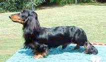 Please view new Shipping Policies. Adult dogs are occasionally available to pet homes. We also offer quality AKC Stud Service. Visit more of my web pages by clicking on the buttons below. Visit more of my web pages by clicking on the buttons below.We would love to show you our beautiful dachshunds!Dachshund characteristics, these dogs are low to the ground, long bodied, short-legged and well balanced dogs. Originating in the European Countries, they were used for hunting small prey. Dachshund, meaning badger dog, is a hunter by scent and also goes to ground. Official AKC Standard of the Dachshund for breeding or show recognizes only two sizes, Miniature, 11 lbs and under at 12 months of age and Standard usually 16 to 32 lbs. Dachshunds come in three coat types, smooth, longhair and wirehair and several colors and patterns. Red, black and tan, chocolate and tan, cream, blue and cream, in dapple and brindle just to name a few.Garlin's Doc Larry Dew MLBlack and Tan Longhair DachshundGarlin Kennel Miniature Dachshund raises Dachshunds for the love and rewards it brings to us.