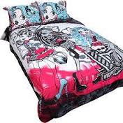 Monster High All Ghouls Allowed Twin/Full Microfiber Reversible Bedding Comforter: Measures 72" x 86" Will fit either a twin or full size bed 100 percent polyester Machine wash in large capacity commercial machine Available online and in stores Specifications Fill Material: Polyester Bed Size: Full , Twin Color: Pink , Multicolor , Black Gender: Girls Fabric Content: Polyester Features: Reversible Character: Monster High Size: Full , Twin Material: Polyester Manufacturer Part Number: ML606C Model: ML606C Brand: Monster High Country of Origin - Components: USA and Imported Country of Origin - Assembly: Imported Age 18-24 25-34 35-44 45-54 55-64 65 and older Gender Male Female Verified purchaser My daughter loves it. Yes (0) No (1) Report Yes (0) No (1) Verified purchaser Verified purchaser The good quality product and the Shipping is very fast. Verified purchaser My daughter loves it. Yes (0) No (1) Verified purchaser The good quality product and the Shipping is very fast.