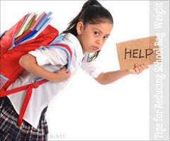 Soft-binding helps maintain the book and also does not contribute to the weight of the bag.5. Pouches can be used instead of boxes to carry stationery like pens and pencils.6. Teach the child to put down the bag while waiting for the bus, during assembly and other such situations. Teacher's contributions towards reducing bag weight1. Teachers can give clear instructions for the study material to be bought the next day.2. Homework can be given on daily basis, but one subject per day. Allotting a day of the week for each subject can reduce the number of books to be carried for submitting homework. 3. Sharing of textbooks can be done with pre-specified partners. One child can bring half the subject-books and another child can bring another set. So, when the class is being taught, the two children can share a textbook.4. Textbooks for grammar can be avoided and exercises can be done in the notebook. However, if the textbook comprises of worksheets, then notebook can be avoided. 5. For language subjects, one notebook can be divided into two sections for grammar and literature, instead of carrying two notebooks.