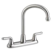 Colony Soft 2-Handle High-Arc Kitchen Faucet Clean, soft lines for contemporary kitchens. This two-handle faucet is part of our Colony® Soft Collection and complements casual-styled kitchens. Features include a tall gooseneck swivel spout, ADA-approved lever handles and fast one-person installation using Quick Spin™ Nuts that tighten by hand.Features include a tall gooseneck swivel spout, ADA-approved lever handles and fast one-person installation using Quick Spin™ Nuts that tighten by hand.Style and substance strike a perfect balance in the kitchen faucet collections from American Standard®. Our kitchen faucets are engineered to look beautiful and function flawlessly. Worry-free, drip-free and built to last, all of our kitchen faucets are covered by our Limited Lifetime Warranty on function and finish. Ceramic disc valves provide a lifetime of smooth handle operation and drip-free performance Durable brass construction for long life Lifetime finish won't tarnish or scratch Limited lifetime warranty for function & finish Brass Gooseneck Spout Metal lever handles ADA compliant Available with or without hand spray