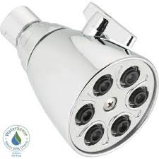 Fixed Shower Head in Chrome. Easy to install with no additional tools required. Three spray settings include full spray, drenching full spray, and shampoo spray.
