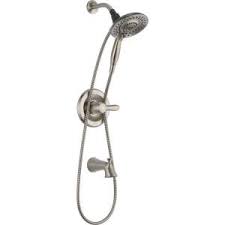In2ition Two-In-One 5-Spray Hand Shower and Shower Head Combo Kit in Stainless Use In2ition shower head/hand shower combo together or separate This In2ition 5-Function Handshower and Showerhead Combo Kit in Stainless puts the luxury back into the shower experience. The integrated hand piece allows for a customizable experience while the full-body spray option provides a revitalizing cascade of water to cleanse and revitalize you. The Monitor Scald-Guard valve helps maintain a constant temperature so you can enjoy a safe and comfortable shower day after day. Due to WaterSense regulations in the state of California, New York, and Colorado please confirm your shipping address is not restricted from use of items which do not meet WaterSense 2.5 GPM flow rate provides steady water flow Spray settings include Full Body, Fast Massage, Full Spray With Massage, and Pause Diverter lever sets In2ition 2-in-1 shower to 1 of 3 options: showerhead and handshower, showerhead only, and handshower only