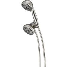 No matter when you use it, this showerhead creates your ideal experience each time. Brushed nickel finish Delta showerhead with hand shower creates your ideal experience 5 spray patterns on hand shower allow for a customized shower experience Touch-Clean nozzles help remove mineral deposits so your showerhead stays looking and working its best 2.5-GPM max flow rate for a steady water flow Limited lifetime warranty covers parts and finish defects 3-way diverter allows you to use the showerheads simultaneously or individually (included) Includes matching 60-in flexible hose for greater reach and a more targeted spray while rinsing Pause feature allows you to save water while lathering shampoo or shaving legs Handheld Showerhead Diameter (Inches) Number of Showerhead Spray Patterns Max Flow Rate (Handheld) Number of Handheld Spray PatternsWe’re sorry, the page that you were looking for cannot be found. Bath Collections by Smart Match
