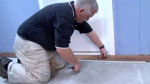 Install glueless, interlocking, floating vinyl tiles on the floor with help from a foreman for Lighty Contractors in this free video clip. Video Transcript Hello everyone I'm Joshua Clement with Lighty Contractors. And today I'm going to talk to you about how to install a glueless floating vinyl tile floor. So here we have our tiles. This is the top side and here's the bottom side. With this type you actually don't need to have any cushioning underneath. They hook together very simple. What you do is you actually start against the wall instead of in the center of the room since these are more like a plank. So you'll start in your corner. Put this edge against the wall. So what you'll do is you'll take and line up your seams here. This is a fake seam that they have running this way. But all you'll do is take line it up, push it down. And then push the sealant on the side together. And then you'll go ahead and just keep doing this working away from your wall. Now we've staggered our actual seams.
