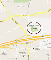 Burfoot, Frye Cove, Kennydell Parks Hours: Dawn to Dusk year-round Black River - Mima Prairie Glacial Thurston County Waste and Recovery Center 2420 Hogum Bay Road N.E. in Lacey The five-acre facility is open from dawn to dusk, seven days a week, and features a special area for small dogs, water stations, a sand and gravel area for digging, paths and fencing. The free park also includes a large, dog bone-shaped patio and The patio consists of personalized “tribute” bricks available for purchase from Thurston County Animal Services, 352-2510. Proceeds from the sale of the sand-blasted and engraved bricks will benefit the Hawks Prairie facility and other future off-leash areas in the Directions to the Off-Leash Dog Park: From I-5 take the Hawks Prairie / Marvin Road exit 111. Head north on Marvin Road (from I-5 southbound, turn right - from I-5 northbound, turn left and cross I-5) Take the 1st right onto Hogum Bay Rd NE.