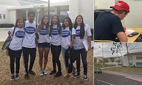 'I feel like they’re saying that we can wear the shirt makes me feel equal with them now. That I have the same privileges as they do. I didn’t feel that before,' Angelina Alvarez told CBS Los Angeles.While the students have since won the right to wear their 'Dump Trump' shirts again, the administration is standing behind their earlier decision ordering the students to take the shirts off. Newport Harbor High School is located in wealthy Orange County, which typically votes Republican in presidential elections 'Regardless of what side you’re on, we do allow students to wear their political attire as long as safety and security of our students is not comprised and that we maintain focus on learning,' Newport-Mesa Unified School District spokesman Annette Franco said. Newport Harbor High School is located in Newport Beach, California, a wealthy town south of Los Angeles, in Orange County. While the rest of California is a mostly-liberal state, Orange County regularly votes Republican in elections, due to its wealthy constituents.