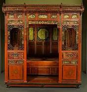 A canopy bed seen in Colonial Williamsburg, Virginia. A canopy bed is a decorative bed somewhat similar to a four-poster bed. A typical canopy bed usually features posts at each of the four corners extending four feet high or more above the mattress. Ornate or decorative fabric is often draped across the upper space between the posts and a solid swath of cloth may create a ceiling, or canopy directly over the bed. Canopy bed of the Chinese Qing dynasty, late 19th or early 20th century. The canopy bed came into existence more for utilitarian means rather than for extravagance or decadence. Canopy beds with curtains that could completely enclose the bed were used by lords and noblemen in medieval Europe for warmth and privacy, as their attendants often slept in the same room. Until the 16th century, these beds, even those of the nobles, were fairly plain and understated. During this period, carved work on the headboard and posts became popular and more ornate canopy beds followed.