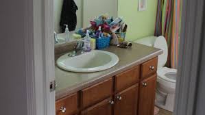 Ronda, who chronicles her projects on her website, Batchelors Way, knocked off the damaged drywall around the window, cleaned it up with a wire brush, then went over it with drywall mud. After that dried, she used a double-sided sticky-mat product (similar to Bondera) to which she affixed inexpensive subway tile and gray grout around the window and all the way to the ceiling for a more dramatic look. “I did it in one day,” she says. She kept the one-piece fiberglass insert to keep costs down but also because she prefers the design. “They don’t have grout, and the corners are easier to clean,” she says. While putting in a new, more powerful fan, Ronda wired in some LED lights for the shower. And to make sure her girls used the fan, she set it up so that when you flip on the lights for the shower, the fan comes on too. “That way if they’re taking a shower, the fan is on,” Batchelor says. Lack of storage was a serious problem for the teenage girls and all their makeup and accessories.