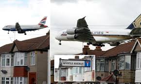 At first glance, Myrtle Avenue, with leafy gardens in pleasant semi-detached houses seems like a suburban idyll.But appearances can be deceptive as the street, located in the London borough of Hounslow, is believed to be one of the noisiest in Britain - as it's just a stone's throw from Heathrow Airport.The road is one of the closest streets to the airport's busy southern runway at just 100 yards from the airport perimeter, with planes regularly flying low over the houses as they jet off and come in to land. An A380 Airbus Super Jumbo comes into land over rooftops at Heathrow Airport South runway Planes coming in to land over Myrtle Avenue, Hounslow, one of the noisiest streets in Britain Behemoth: An Emirates planes coming in to land over Myrtle Avenue, Hounslow , believed to be one of the Noisiest Streets in Britain Neighbours: The road is one of the closest streets to the airport's busy southern runway at just 100 yards from the airport perimeter, with planes regularly flying low over the houses as they jet off and come in to land