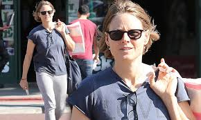 She moved audiences to tears when she touched upon her sexuality in an impassioned speech at the Golden Globe Awards last month. And it would appear making the frank speech had been a weight off Jodie Foster's mind if her latest youthful look is anything to go by. Stepping out to run errands in Santa Monica, California, on Monday, the 50-year-old actress looked younger than ever thanks to her flawlessly glowing skin. Rolling back the years: Jodie Foster cut a youthful figure as she stepped out in Santa Monica, California, on Monday Passing for a woman half her age, the star showed off her slim figure in a pair of grey and white striped slim-fit trousers, which she teamed with a loose-fitting charcoal T-shirt and matching high-top trainers. The mother-of-two accessorised her look with a pair of dark shades, an oversized navy leather handbag and minimal make-up to show off her envy-inducing skin.And although Jodie seemed to be on a mission when it came to completing her chores for the day, it would appear she had been the unlucky recipient of a parking ticket, with her Audi sporting a piece of paper on the windshield as she sped off into the distance.