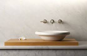 Make sure there is enough room between the faucet and the sink for users to wash their hands or brush their teeth. Because vessel sinks sit above the countertop, they require a counter-based faucet with a long neck that can reach up over the side of the basin and allow adequate clearance in the basin. Another option for a vessel sink is a wall-mount faucet, which Kalis says makes the most practical sense. “Most wall-mounted faucets have a bigger throw–or reach–from the back of the wall to the middle of the sink,” Kalis says. The shape of things to come Another reason to love vessel sinks is the variety and uniqueness of their shapes. “Vitreous china sinks are like black-and-white photos, where you focus on the shape of the sink,” says Kalis. Striking shapes include the Vox® round style and the square Bateau®. Some vessel styles, like the Conical Bell® Vessels, have deep bowls, while others, like DemiLav® Wading Pool®, are shallower. Distinctive as they are, vessel sinks styles are classic and therefore not in much danger of becoming outdated over time, according to Kalis.