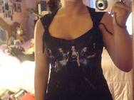 Cut away from the neckline at the back of your shirt, about 4 inches from the top to create a wider U-shape. Then cut out about a 4 by 2 inch strip from the excess material to use as a tie later. The lower you cut the back of the neckline, the lower on your back the bow will be. You can always adjust this cut to be lower later, so cut less to begin. Make a slit across the back and gather towards the top. Make a cut all the way across the back of the shirt, 6 inches down from each armpit. Gather the fabric between this cut and the neckline and tie with your fabric strip to create the bow. Make sure to start and end your back cut just inside the side seams of your shirt. Otherwise, the cut can grow wider around the sides of the shirt. Tie the bow together securely at the center of the gathered fabric with the scrap that you cut from the neckline piece. Wrap the piece around several times if the fabric allows. Make sure to use sharp sewing scissors to make any cuts on a t-shirt.