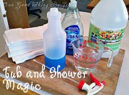 The detergent should have dissolved enough of the stain to allow you get the worst of it out by hand. Wet the stain with warm water. Sprinkle baking soda over the area. Dust the floor of the tub with a coating of baking soda. Use an especially heavy hand in the area around the stain. Wetting the tub beforehand will allow the baking soda to stick. The baking soda will act as a mild abrasive which will help remove set-in stains without damaging the surface of the tub. A natural chemical compound like powdered Borax will also work in the place of regular baking soda. The wet baking soda will form a paste and will start to loosen the stain on its own. Leave this paste to sit on the stain for 5-10 minutes before adding the vinegar. Spray the stain with vinegar and allow it to sit. Fill a spray bottle with vinegar and apply it to the baking soda paste. The vinegar will activate the baking soda (think of the volcanoes you made as a kid) and form a frothy layer on the tub.