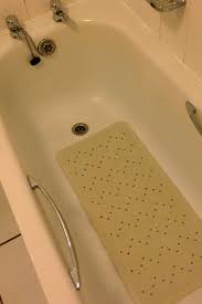 The rubber is thick enough for durability. Yes (0) No (0) Report Yes (0) No (0) Verified purchaser This product was purchased to eliminate slips in the bath for an elderly parent. It is comfortable for his use, and does what it was meant to, provide a bit more stability and safety. Yes () No (1) Report Yes () No (1) Safe for children- No BPA, PVC or Phthalates in this mat. I searched high and low for a safe mat like this. Sticks to the tub. Has a grippy surface so my toddler doesn't slide around. Does what it's supposed to do. Pick it up out of the tub when you're done and it won't mold; leave it in the wet tub and it will mold. Yes (8) No (0) Report Yes (8) No (0)It was a damp, snowy winter, and so far, it's been a damp, wet spring, which means that getting rid of mold is the number one challenge in my bathrooms. Adding to that, our water leaves lime deposits, so my spring-cleaning chores include tackling all the hard-water deposits that build up all winter long.
