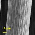 Manufacturing these cylindrical bulbs is very high-tech. After the filaments are sealed to the glass at the bottom, most of the air is evacuated from the top. While a propane flame heats the neck in the top of the bulb to a semiliquid state, a jet of liquid nitrogen cools the base to minus 321 degrees F.