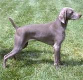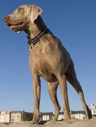 The Weimaraner ( VY-mə-rah-nər) is a large[2] dog that was originally bred for hunting in the early 19th century. Early Weimaraners were used by royalty for hunting large game such as boar, bear, and deer. As the popularity of large game hunting began to decline, Weimaraners were used for hunting smaller animals like fowl, rabbits, and foxes. The Weimaraner is an all-purpose gun dog. The name comes from the Grand Duke of Saxe-Weimar-Eisenach, Karl August, whose court, based in the city of Weimar (now in the state of Thuringia in modern-day Germany), enjoyed hunting. Today's breed standards are alleged to have developed in the late 18th and early 19th centuries, although dogs having very similar features to the Weimaraner have supposedly been traced as far back as 13th century in the court of Louis IX of France. One theory is that the ancestor is the St. Hubert Hound (also known as the Bloodhound and Sleuth Hound)[]. Though these dogs are black, they can produce a grey dog when bred.