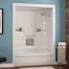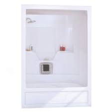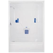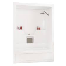 Perfect for that do-it-yourself bathroom renovation. Built-in shelves and towel bar for convenient storage 3-piece sectional including roof cap; easy to bring and handle inside your home Durable high gloss acrylic stays warm to the touch and is easy to cleanalso available in right-hand Soap accessories not included Limited warranty is for a period of 25 years on the acrylic, phone # 1-877-GET-MAAX MAAX Aspen White Shower Wall Surround Side and Back Panels (Common: 32-in; Actual: 85-in x 31.75-in) Item # 345609 Model # 101023-000-001-005 Showerhead and bathing accessories not included 3-piece sectional tub shower including roof cap; for additional bathing comfort Durable high-gloss acrylic with strong fiberglass backing Recommended door: Sky 48” – 53 ½” x 57 3/8” tall with chrome finish and clear glass Opening Size in Inches Number of Wall Panels Number of Built-In Shelves Number of Towel Bars Number of Grab Bars