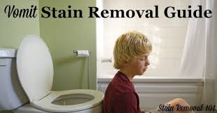 Below are instructions for vomit stain removal from fabric, upholstery and carpet. However, before you read the instructions below please note that this is general information about removing stains caused by vomit. If you are having trouble getting the stain out using the information below please check the A-Z Stain Removal Guide for specific instructions about the type of food that was contained in the vomit. (I know that is gross to think about, but unfortunately true.) Step 1: Scrape off any excess vomit from the fabric. Step 2: Run the fabric, inside out, under the cold water to flush out as much of the vomit as possible. Step 3: Pretreat the stain with a laundry stain remover. Step 4: Launder in the hottest water the fabric will allow to get out the stain, and either chlorine bleach if the fabric will allow it, or oxygen bleach if not. Hint: Make sure the stain is gone after washing, but before you place in the dryer or you may set the stain.