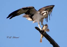 Cynthia Howard of Fort Walton Beach captured this great photograph of an osprey and its lunch on Okaloosa Island on Feb. 25. One of the largest birds of prey in North America, the Osprey eats almost exclusively fish. It is one of the most widespread birds in the world, found on all continents except Antarctica. Ospreys are year-round residents in Northwest Florida. • The Osprey readily builds its nest on manmade structures, such as telephone poles, channel markers, duck blinds, and nest platforms designed especially for it. Such platforms have become an important tool in reestablishing Ospreys in areas where they had disappeared. In some areas nests are placed almost exclusively on artificial structures. • Osprey eggs do not hatch all at once, but instead the first chick hatches out up to five days before the last one. The older chick dominates its younger siblings, and can monopolize the food brought by the parents. If food is abundant, little aggression is seen amongst the chicks, but if food is limited, the younger chicks often starve.