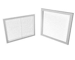 Grilles & Registers - Complete Airfoil series grilles and registers feature premium quality extruded aluminum construction. Heavy Duty Gym Grilles Heavy duty gym grilles are available in 0° or 45° louver deflection and in steel or aluminum construction. These grilles are specifically designed for use in gymnasiums or other rugged use areas. Lattice face grilles are available for air distribution, architectural applications, and security covers. They can be fabricated in a choice of materials to suit the desired application. Louvered/Perforated face can be economically supplied in steel, aluminum or stainless steel for almost any application. Reversible core grilles are a sidewall supply grille. The adjustable air pattern can be used for heating or cooling applications without changing the grille’s appearance. Standard filter return 9s available in steel or aluminum construction. It has been designed for quick access to 1” (25) or 2" (51) filter media and for complete grille removal to aid in cleaning.