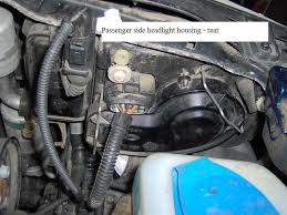 The right info, the right tools, and most important, the desire. Believe it or not, the last one is the most important. from the manufacturer, via ITan's little sister, identifix Headlight bulbs are inside the sockets located in the engine compartmentDetach the wiring from the back of the headlamp bulbThis procedure only applies to replaceable halogen headlight bulbs (such as Nos. 9004 and 9005); it does NOT pertain to sealed beam units.Open the vehicle's hood and secure it in an upright position.Twist and pull the bulb out, but do NOT touch the bulb if it is still goodUnfasten the locking ring which secures the bulb and socket assembly, then withdraw the assembly rearward.If necessary, gently pry the socket's retaining clip over the projection on the bulb (use care NOT to break the clip.) Pull the bulb from the socket.To install:Before installing a light bulb into the socket, ensure that all electrical contact surfaces are free of corrosion or dirt.Line up the replacement headlight bulb with the socket.