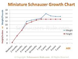 These are the questions most people want to know the answers to before deciding whether or not to purchase a Miniature Schnauzer. Being informed about a dog breed that you are considering bringing into your home and making a part of your family, is a great first step as a responsible dog owner. So, read through each of the questions and answers below and see if a Miniature Schnauzer is the right dog breed for you and your lifestyle. Where did the Miniature Schnauzer come from?..... The Miniature Schnauzer originated in Germany, during the late 1800’s, as a smaller version of the standard schnauzer – making it more suitable as a house pet – but still able to hunt vermin. What is the size and shape of the Miniature Schnauzer?..... The Miniature Schnauzer breed standard calls for 12” to 14”. A typical miniature schnauzer weighs between 11 to 20 pounds and is described as a robust dog with a strong body, sturdy build, whiskers and leg furnishings. Click on left growth chart to open PDF file.
