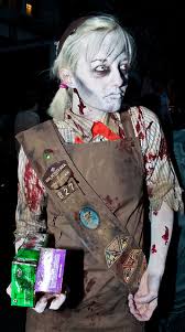 They turn into the undead and crave brains just like every other zombie. Cheap comic book super hero costumes can be had at plenty of costume stores. In fact, the cheaper the better because then you won’t feel so bad when you ruin the outfit with all your zombie stuff. Think about how you’ll stand out at Zombie Spider-man or Zombie Superman. Is there anything more horrifying then Girl Scouts trying to sell you cookies? What if those Girl Scouts were zombies? You get the idea. Gather up a couple of your closet friends and put together your own zombie Girl Scout troop. If you really want to take this to the next level consider guys going in drag as zombie Girl Scouts. The mind boggles at the possibilities. Just as it is easy to find super hero costumes you can also find lovely Disney character costumes then destroy them by turning them into zombie outfits. Take your pick: Tinkerbell, Snow White, Aladdin, Cinderella… don’t they all deserve to be zombies? Sticking with the ‘what other movie icons can you turn into zombies’ theme then Star Wars becomes the obvious choice.
