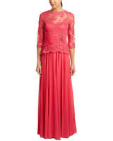 To ensure that you find the perfect Mother of the Bride gown, here are a few pointers to keep in mind: Before you begin shopping, think about your personal style and what designs, cuts and colors are the most flattering for you. If you typically gravitate towards a more conservative look, keep your eyes open for a not-so-flashy, elegant evening gown with sleeves with a classy, A-line silhouette. Also, a lace blouse and fishtail skirt is a stylish option that has “elegance” weaved into its seams. If you’re willing to experiment with color, a bright gown is another fabulous look and a mermaid or fit-n-flare silhouette will add an extra touch of oooomph to your ensemble. Teri Jon has a large selection of plus size evening gowns, and some even with extended sizing to size 20. Talk to your daughter or future daughter- in-law to get a feel for the visual she's trying to create. Between the bride’s wants and the wedding’s location, the proper attire will be pretty obvious for you and the rest of the wedding party.