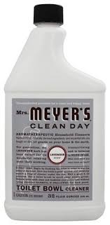 At times they choose to use non-plant-derived material for reasons of efficacy, consistency and safety. Their products do not contain chlorine bleach, ammonia, petroleum distillates, parabens, phosphates or phthalates. They use concentrated, biodegradable formulas and at least 25% post-consumer plastic in their bottles. They do not test on animals. About Mrs. Meyer'sHow They Began Suggested UseBack to top Begin by flushing the toilet in order to wet the sides of the bowl. Give the bottle a good squeeze and carefully squirt a ring of cleaner under the rim. Wait a good 5-10 minutes. Use a toilet brush to scrub away excess grime. Water, Lactic Acid, Citric Acid, Alcohols C7-21 Ethoxylated, Lavandula Angustifolia (Lavender) Oil, Citrus Aurantium Dulcis (Orange) Peel Oil (Certified Organic), Fragrance, Xanthan gum, PEG-2 Cocomonium Chloride Avoid contact with eyes. Keep out of reach of cghildren and pets. If products gets in eyes, flush with water for 15 minutes. If swallowed, drink a glassful of water.