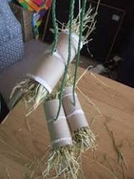 The simplest things to do with a few toilet rolls is to stack a load of them up on top of each other. Now all you have to do is wait till the temptation becomes too much and you rabbit has to knock them over, then stack them up again. This is a game that can go on for just about as long as you want to play it. Try building a fence by lining them or even hiding some treats under them to make it more fun. 5 toilet roll inners Build the stacks up and let your rabbit knock them over Another simple toy you can make that will keep your rabbit busy is to pack toilet rolls inside one another so treats can be wedged inside the folds in the end. Take the first toilet roll then roughly fold another roll along its length and slide it inside. Repeat this till the first roll is packed out will a number of rolls. Finally push some treats into the folds at each end. If you don’t want the mess of a hanging toy filled with hay, but your rabbit enjoys dangling toys, try making a toilet roll into a kind of spring that hangs down.