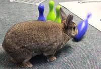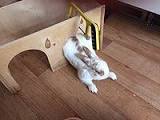 [8] Digging also wears out a bunny's nails. Rabbit digging on a seagrass mat. Below are resources to DIY instructions for digging toys. Some links to read for more information on the digging behavior of bunnies have been listed below. A black lionhead rabbit with some baby stack-up cups on her back. Some rabbits like throwing and tossing objects with their mouths. Others like the noise that they can make. Many of the chewing toys listed above can also be thrown if they are a small enough size. A white lionhead rabbit on the top level of an Armarkat cat tree. Rabbit exploring a castle. Castles from Napoleon Bunnyparte. Some rabbits like hopping on top of objects to get a higher point of view of their territory. Rabbit sleeping in a cat condo.Rabbits are natural burrowers that dig to create underground warrens. You can also stuff paper into these tunnels to make them for fun for a rabbit to dig out. The following toys can provide mental stimulation for your rabbit and teach them problem-solving skills.