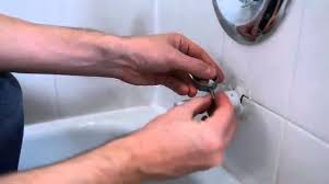Some have a cover plate, which can be pried off with a small screwdriver. Others, like the one featured in this video, have a small set screw somewhere on the handle. Once it’s loosened with an allen wrench, you can remove the handle gaining access to the parts below. • The remaining components of the handle either unscrew or pull off. Keep removing parts until you reach the valve in the wall. If you have a tub spout, this will either remove with a set screw, or will twist off by turning it counterclockwise. Plumbing inside the wall is configured for the type of shower faucet you have. Hot water typically comes in from the left, cold from the right. The two are mixed in the valve and will either go up to the showerhead, or down to a tub spout. A diverter directs which way the water goes. • To put in a new valve, you’ll first need to remove the old one from inside your shower. • To gain access, cut out a section of drywall approximately a foot square on the other side of the wall from your shower valve.