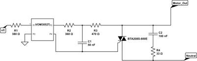 For a central vacuum cleaner, such areas as small closets, attics, garages can have very high ambient temperatures that will create problems for the motors in operation. Continued operation of the vacuum motor at very high temperatures can lead to premature failure. One of the most common problems seen is bar movement of the commutator. Commutator construction varies but most of the units that Lamb uses have the bars held in place with a moulding compound. These commutators are very durable and have been highly reliable when the operating temperatures of the motors are within agency limitations. I have build a circuit with the purpose of driving a ~1000VA AC motor. The motor controller fires a triac only at zero crossings. The circuit is as follows: Both C2 and C1 are ceramic capacitors. R4 is a 5W resistor, the rest is regular 1/8W. The BTA208S-800E has a proper heatsink mounted directly to it. The problem is this: after a few seconds of operation the circuit gets really hot and a little later starts to malfunction (random firing, loss of speed control).