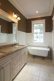 An inexpensive alternative to tile, beadboard is a great choice for bathrooms because it is relatively durable, can be painted any color, and can be installed at any height. While you often see it in traditional or rustic bathrooms, bead board does not have to impart a cutesy country feel. It can be positively sleek and cool. And best of all, beadboard can add a new visual contrast to any remotely blah bathroom. To save you money and time, contractors may install whole sheets of beadboard instead of placing each piece by piece. And beadboard now comes in all kinds of materials from MDF to PVC. And, of course, beadboard can be used elsewhere in the house: as a kitchen backsplash, on the ceiling, on cabinets or on any interior wall. So, what exactly is beadboard? Beadboard crops up in cabinetry and on ceilings and sometimes covers an entire wall. But you are probably most familiar with it as beadboard wainscoting in the bathroom. In other words, the beadboard comes about 1/3 up the sides of the wall, with the chair rail at the top and the baseboard at the bottom.