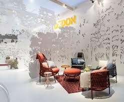 A remarkable vision of garden in marvelous white color is hosting a series of exotic Dedon furniture at Salone del Mobile. The stand is decorated with trees, leaves, vines and flowers. The jungle inspired it. This monochromatic but exotic garden is the perfect location for exhibiting the new Dedon models for outdoor furniture. They are made mainly by natural materials in bright colors. Based on a concept by designer Daniel Pouzet and drawings by his wife, Marilena Oprean, the stand aimed to marry ‘the drama of the tropical wilds with the restraint of a white cube gallery.’ The jungle was constructed with white aluminum panels, laser-cut to form layered silhouettes of richly articulated tropical foliage – leaves, flowers, branches and more. Panels were bent to form a series of alcoves for displaying furniture and conducting meetings within the midst of the wild. Decor Furniture Design Gardens Sofas Textiles Wall Covering Juxtaposing a solid teak base with mesh-like, triaxial woven fiber, the Mbrace collection of outdoor seating, designed by Sebastian Herkner with Nordic inspiration, includes a wing-back lounger, a low-back lounger, a rocker, and a footstool.