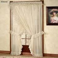2 soldStacey Country Ruffled Priscilla Curtains Slate Blue 84" long Criss Cross $39.99Shaped Country Ruffle Priscilla Valance White or Natural 86" x 14"