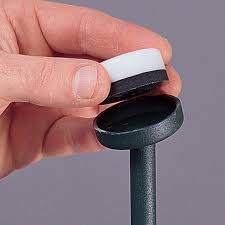 Do you have any ideas or suggestions? Thank you for your help. Q. I am interested in finding replacement pads or rubber cups to fit over the feet to protect surfaces from marring or rust stains on an outside wood deck. Rubber Caps for Metal Tubing You can find those rubber caps and tips in a number of different sizes from Shephard Hardware products through this Amazon link Q. I am also looking for caps to put on wrought iron chairs for our porch. The style that I need or that I have on them now (but need replaced) are a flat circular flexible cap with a little lip to cup the flat disc on the bottom of leg. Inserts for retro formica table legs Q. Purchased Mid Century Table (Yellow) and 4 chairs. All are good but the table legs don't have the inserts that go in the legs of the table legs. Does anyone carry the inserts for the legs of the tables. I have 6 chairs and every one has a coaster inserted into the end of each leg and each coaster has a round disk that swivels when chair moves.